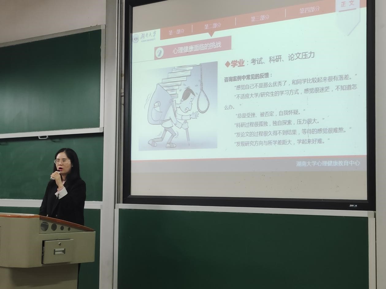 加强源头管理,全方位提升员工心理健康素养,增强员工应对心理健康问题的能力,是新生入学教育系列工作中重要的一环。9月22日晚19点,qy球友会在东楼211室举办了“新征程 心启航”心理健康教育讲座,由千亿球友会心理健康教育中心林威娜老师主讲,全体2023级本科生和研究生新生到场学习。