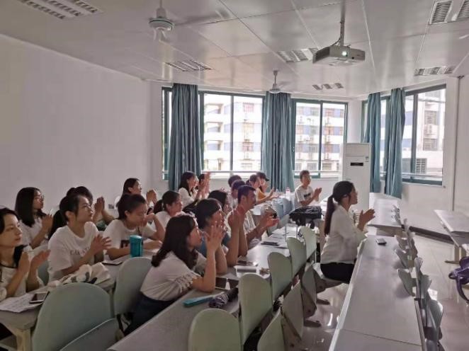 见面会的最后一个环节是学唱歌曲《我和我的祖国》及《千亿球友会校歌》,同学们全神贯注地聆听并用心地去吟唱。最终,2019级研究生第一次见面交流活动在昂扬的歌声中结束了。